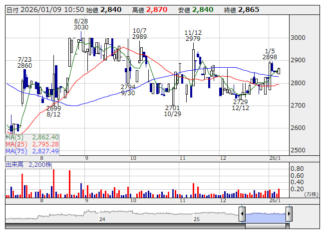 太平製 <日足> 「株探」多機能チャートより■財務省 : 1月9日受付