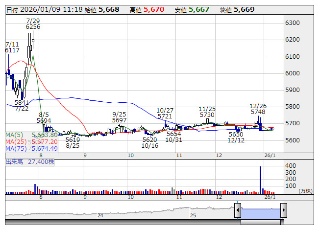フジテック <日足> 「株探」多機能チャートより■財務省 : 1月9日受付