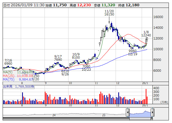 <9552> クオンツ総研 1182 +20 ( +1.7%) 1153.8 1145.0
