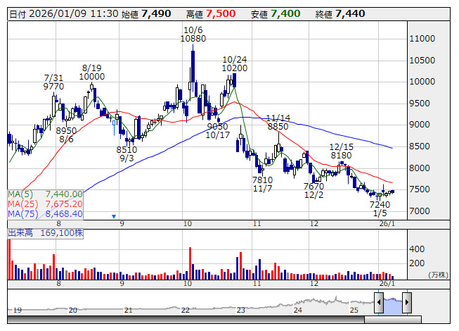 霞ヶ関C <日足> 「株探」多機能チャートより■財務省 : 1月9日受付