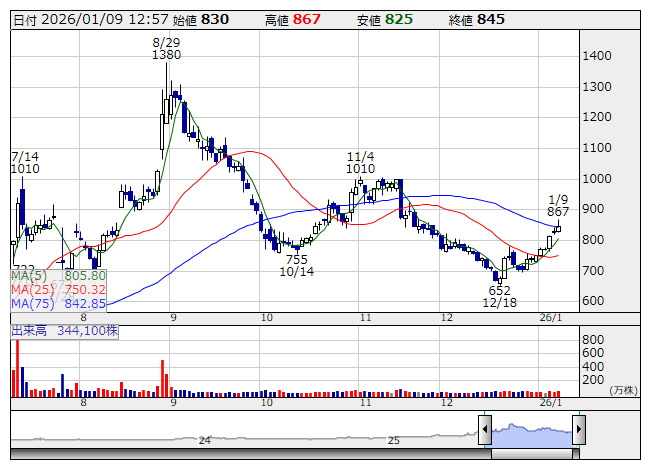 イクヨ <日足> 「株探」多機能チャートより
