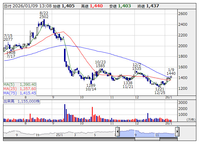 タイミー <日足> 「株探」多機能チャートより■財務省 : 1月9日受付