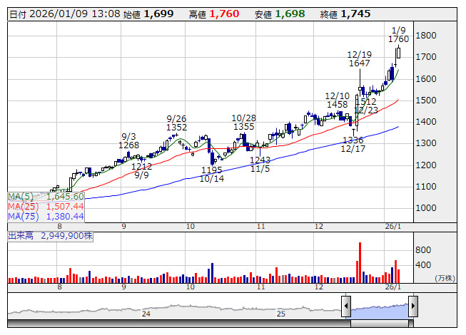 石油資源 <日足> 「株探」多機能チャートより9日の東証プライム市場で石油資源が続伸。同社は資源開発大手で、原油・天然ガスの探鉱、開発、生産などを手掛けている。レアアース関連株として注目度が高まっている。同社など4社が14年に設立した「次世代海洋資源調査技術研究組合(J-MARES)」は南鳥島周辺のレアアース泥などの海底鉱物資源を対象にした調査技術や生産技術の開発に取り組んできた。同社は、J-MARESの後継組織として23年に設立された次世代海洋調査(東京都千代田区)にも出資している。