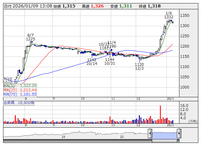 トリニ工 <日足> 「株探」多機能チャートより■財務省 : 1月9日受付