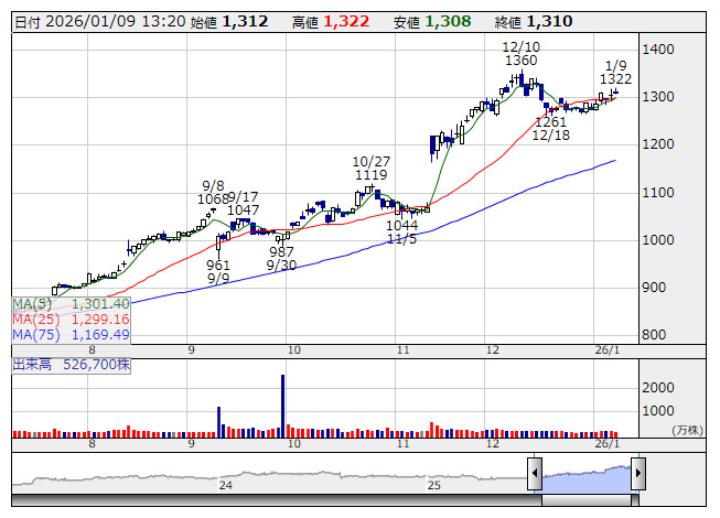 シチズン <日足> 「株探」多機能チャートより■財務省 : 1月9日受付