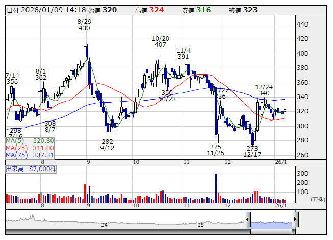 CSHD <日足> 「株探」多機能チャートより■財務省 : 1月9日受付
