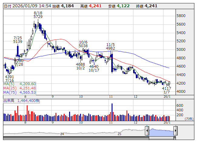 バンナムHD <日足> 「株探」多機能チャートより■財務省 : 1月9日受付