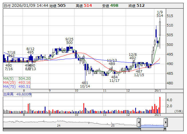 9835>が堅調推移。同社は9日午後1時、26年2月期第3四半期累計(3~11月)の単独決算を発表。売上高は前年同期比1.7%減の336億3500万円、営業利益は同6.1%減の6億9300万円だった。業績が上半期に偏重する季節性を持つ同社の営業利益は通期計画(4億8000万円)を超過している。9~11月期は営業赤字とあって発表直後は売り買いが交錯したが、下値は堅くプラス圏を維持している。物価高による消費者の買い控え意識から減収となった一方、仕入れ値の見直しにより売上総利益率は改善。農業・園芸部門では農業用品や農業機械、熱中症対策商品が好調だった。