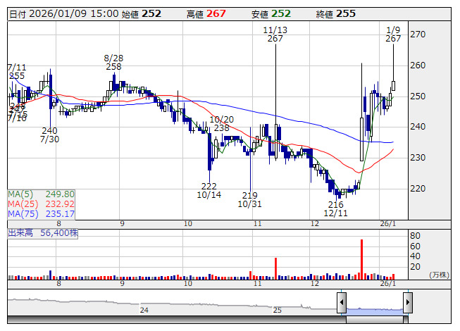 田谷 <日足> 「株探」多機能チャートより■財務省 : 1月9日受付