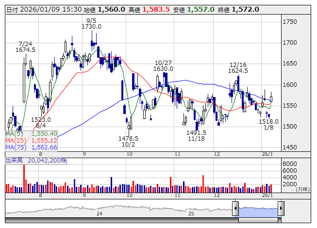 <6055> ジャパンマテリアル 1519 -13 ( -0.8%)