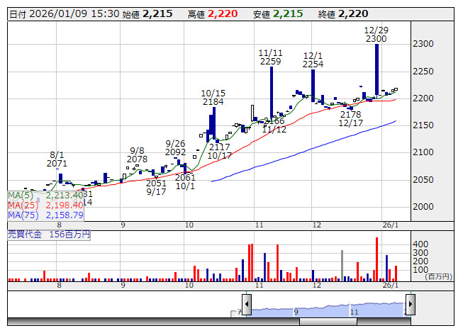 33. <3070> ジェリビンズ 86 ( +8.9%) 225 ( 4.5倍)