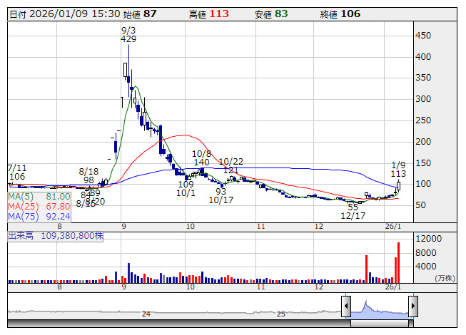 【材料】本日のランキング【値上がり率】 (1月9日)