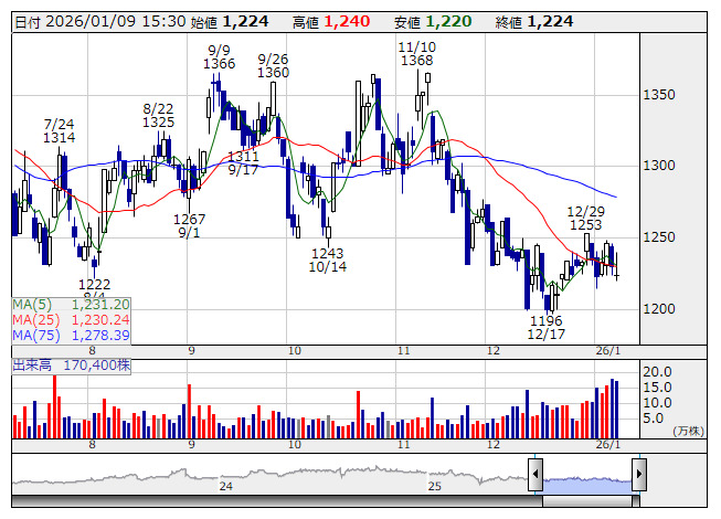 テイカ <日足> 「株探」多機能チャートより■財務省 : 1月9日受付