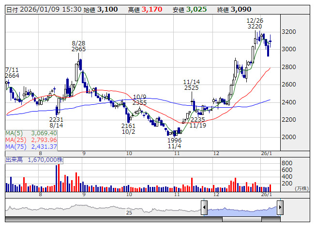 2026年01月09日15時56分 【材料】トライアルの12月既存店売上高は3カ月ぶり前年割れ トライアル <日足> 「株探」多機能チャートより トライアルホールディングス<141A>がこの日の取引終了後、25年12月度の月次売上高速報を発表しており、既存店売上高は前年同月比0.2%減と3カ月ぶりに前年実績を下回った。 中旬に気温が前年を大きく上回る暖かい日が続いたことで、冬物季節商品が軟調だった。また、前年12月にあったポイントアップイベント「周年祭」1日分(日曜日)が今年はなかったことも響いた。なお、全店売上高は同7.7%増だった。 出所:MINKABU PRESS