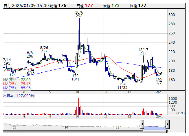 リンカーズ <日足> 「株探」多機能チャートより■財務省 : 1月9日受付