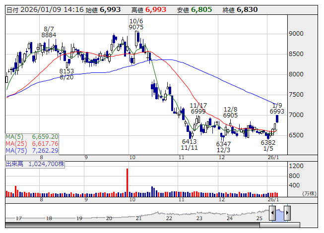 ベイカレント <日足> 「株探」多機能チャートより■1月13日~16日の決算発表銘柄(予定) ★は注目決算
