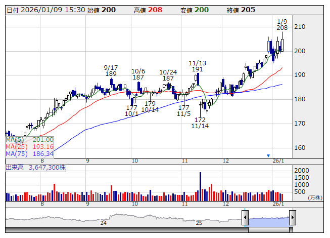 UT <日足> 「株探」多機能チャートより■財務省 : 1月9日受付