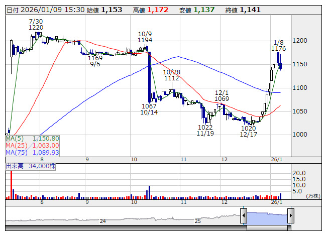 エストラスト <日足> 「株探」多機能チャートより主力の不動産分譲事業で、分譲マンション371戸(同146戸増)の引き渡しを行ったことが牽引した。また、不動産管理事業でグループの管理物件が増加し、マンション管理戸数が6749戸(同699戸増)となったことも寄与した。
