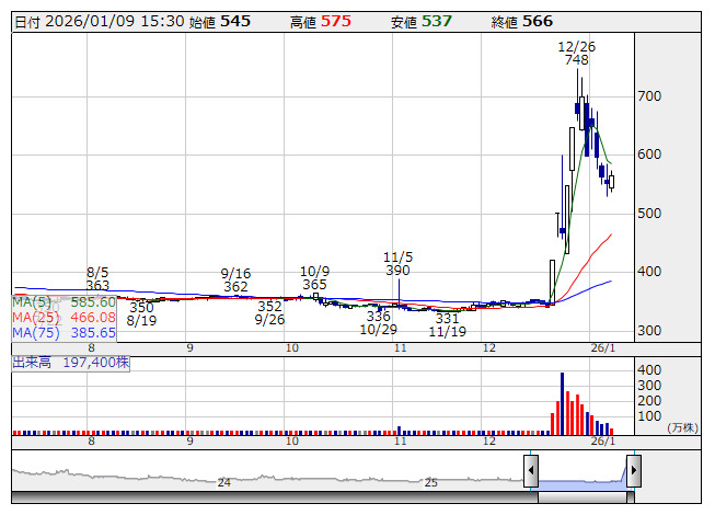 津田駒 <日足> 「株探」多機能チャートより■財務省 : 1月9日受付