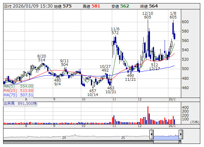 CIJ <日足> 「株探」多機能チャートより■財務省 : 1月9日受付