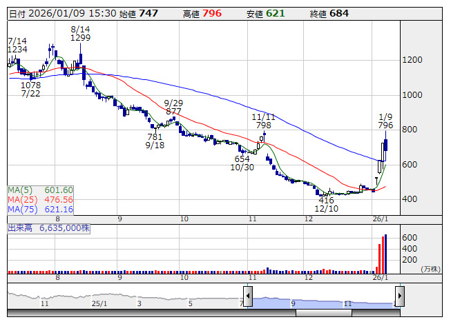 34. <9259> タカヨシHD 東証G 7.0倍 ( 463) 806 ( +6.2 )