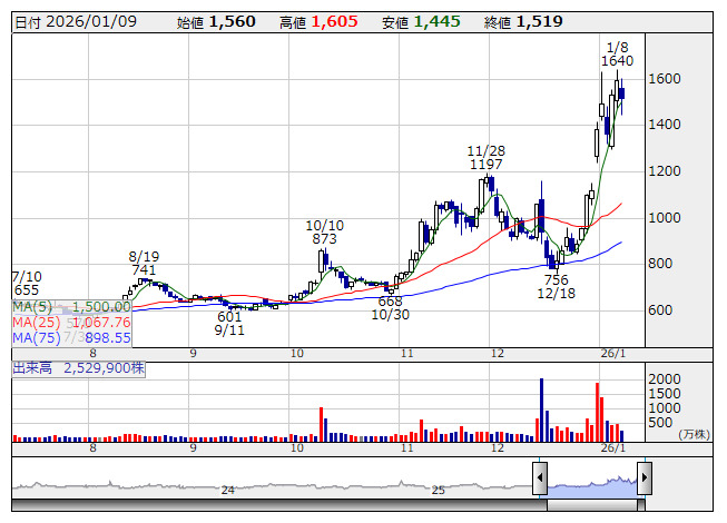 オンコリス <日足> 「株探」多機能チャートより――――――――――――――――――― 1月 6日 (火) 発表分――