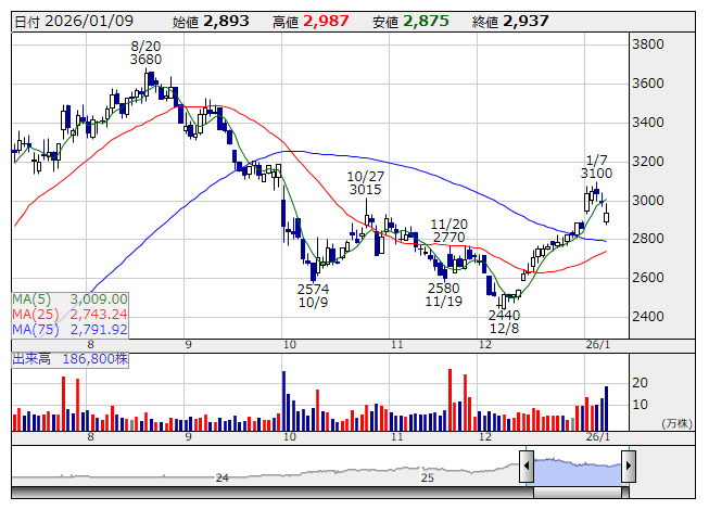<8198> MV東海 東S -0.27 1/ 8 3Q -4.73