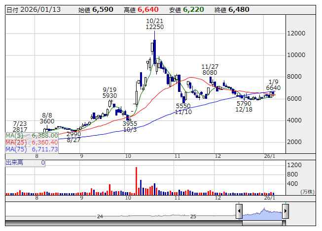2026年01月13日10時38分 【材料】助川電気---ストップ高買い気配、衆院解散検討報道で高市トレードが再燃 助川電気 <日足> 「株探」多機能チャートより 助川電気<7711>はストップ高買い気配。高市首相が衆院解散の検討に入ったと一部報じられており、衆院選は2月上中旬に実施される公算が大きいとされている。総選挙での自民党の勝利を織り込む動きとなり本日の日経平均は急騰、高市政権の政策期待があらためて高まる状況になっている。こうした中、核融合発電関連銘柄の一角として、高市トレードにおける材料株の中心格と位置付けられている同社に買いが向かう展開になっている。 《HM》 提供:フィスコ