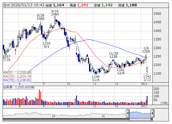 2026年01月13日10時42分 【材料】コシダカHDは反落、固定費増で第1四半期営業利益60%減 コシダカHD <日足> 「株探」多機能チャートより コシダカホールディングス<2157>は反落。前週末9日取引終了後に発表した第1四半期(25年9~11月)連結決算は売上高が163億5400万円(前年同期比8.3%増)、営業利益は2億9200万円(同59.9%減)だった。大幅減益を嫌気した売りが出ている。 積極出店を継続したものの前期大型コラボ案件の反動で既存店は減収に。人件費や水光熱費の管理適正化で費用率低減も、その他の固定費増加で利益が押し下げられた。「厚木ビスタホテル」の売却に伴う特別利益の計上により、純利益は6億6800万円(同41.8%増)と大幅なプラスで着地した。 出所:MINKABU PRESS