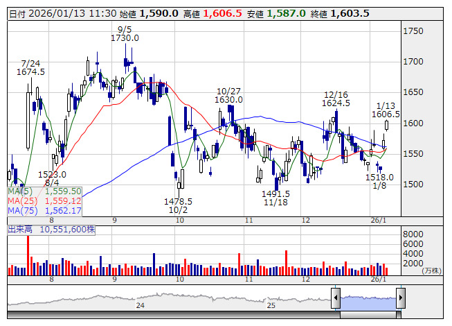 <7267> ホンダ 1603.5 +31.5 ( +2.0%) 1559.5 1559.1