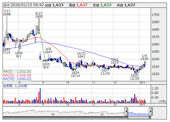 ライフフーズ <日足> 「株探」多機能チャートより■財務省 : 1月13日受付