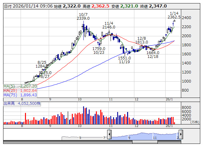 1. <5016> JX金属 東証P 4,025 2343.5 ( +3.4 ) レアメタル関連