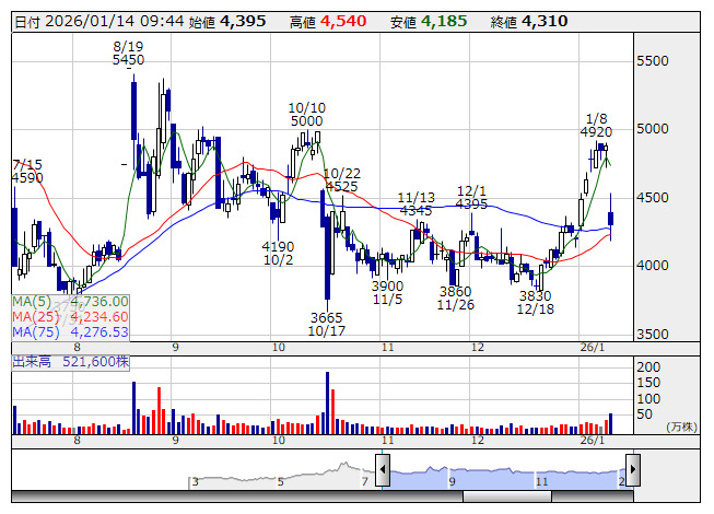 テンシャル <日足> 「株探」多機能チャートより第1四半期は、引き続き自社ECが売り上げを牽引したことに加えて、認知率の継続的な高まりにより直営店舗・卸などオフラインによる売り上げも拡大した。第2四半期の商戦に向けた戦略的なマーケティング投資を実行しつつ、計画を上回る営業利益を計上した。なお、26年8月期通期業績予想は、売上高280億4600万円、営業利益30億2000万円、純利益20億5400万円の従来見通しを据え置いている。