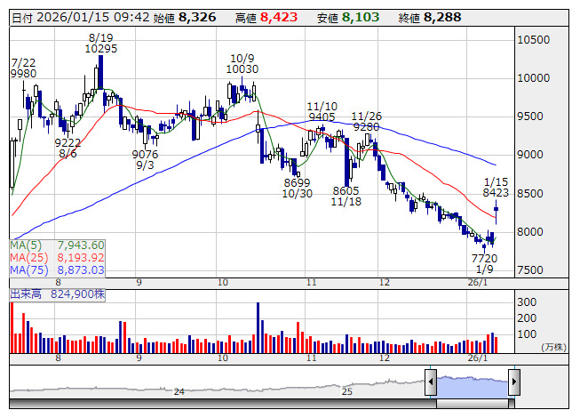 同時に、2月28日を基準日として1株を5株に株式分割すると発表しており、これも好材料視されている。投資単位当たりの金額を引き下げることでより投資しやすい環境を整え、株式の流動性の向上と投資家層の拡大を図ることを目的としている。