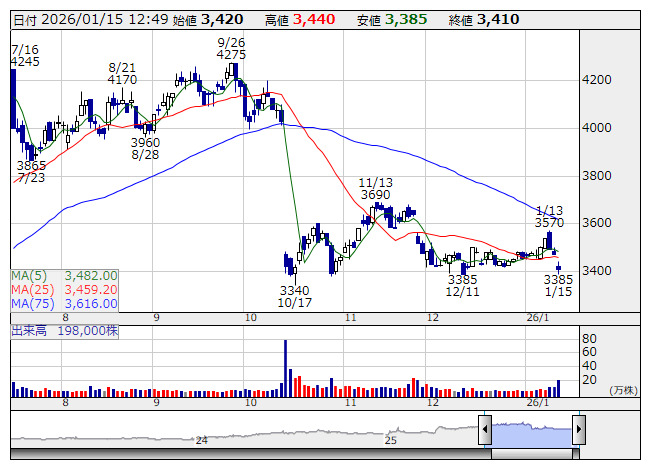 ラクトJ <日足> 「株探」多機能チャートよりラクト・ジャパン<3139>は14日、2025年11月期連結決算を発表した。売上高が前期比7.0%増の1,828.16億円、営業利益が同33.5%増の59.47億円、経常利益が34.1%増の57.96億円、親会社株主に帰属する当期純利益が同37.2%増の43.17億円となった。