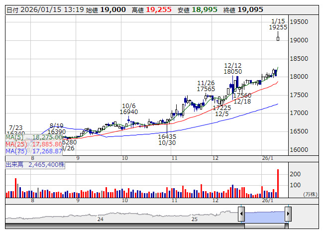 2026年01月15日13時20分 【材料】豊田織機---大幅反発、トヨタグループによるTOB価格引き上げが発表 豊田織 <日足> 「株探」多機能チャートより 豊田織機<6201>は大幅反発。TOBの実施を予定していたトヨタグループでは、TOB価格をこれまで示していた16300円から18800円に引き上げると発表している。TOB実施期間も開始日を従来より早め、15日から2月12日までとしている。同社では前日にTOBに対する応募推奨を表明。米エリオットの株式取得などもあって、TOB価格引き上げは織り込まれていたが、本日も新たなTOB価格を上回る水準にまで上昇している。 《YY》 提供:フィスコ