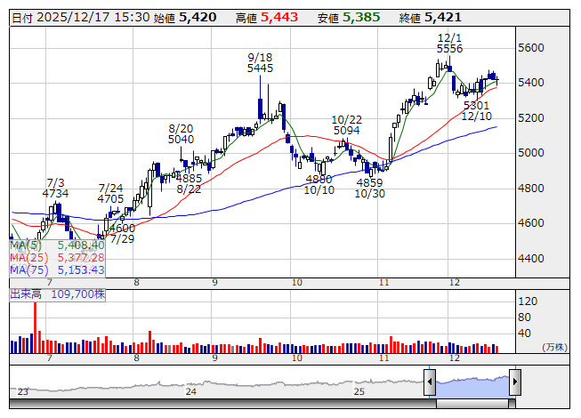 グリコ <日足> 「株探」多機能チャートより